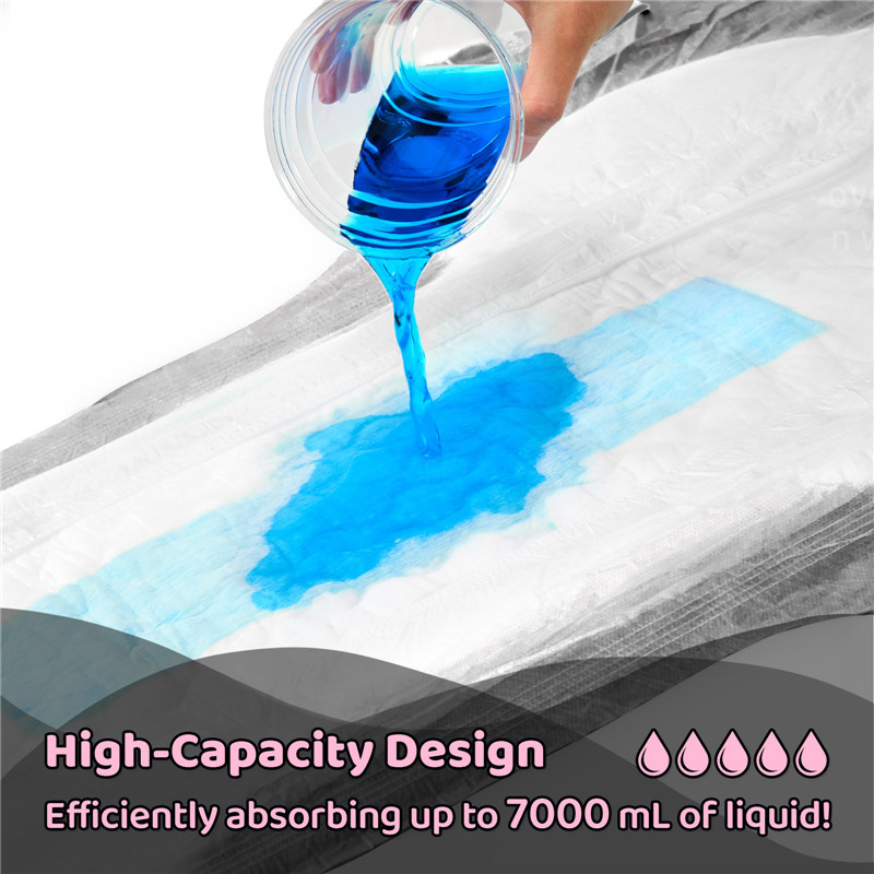 Heavy Absorbent Core: Designed for high-capacity absorption, the advanced moisture-wicking core stretches from the front to the back, efficiently absorbing up to 7000 mL of liquid. The high-capacity design prevents leaks, reduces moisture contact with the skin, and supports extended dryness and comfort. Whether for daily wear or overnight use, trust in superior protection that lets you go about your day with confidence and ease.