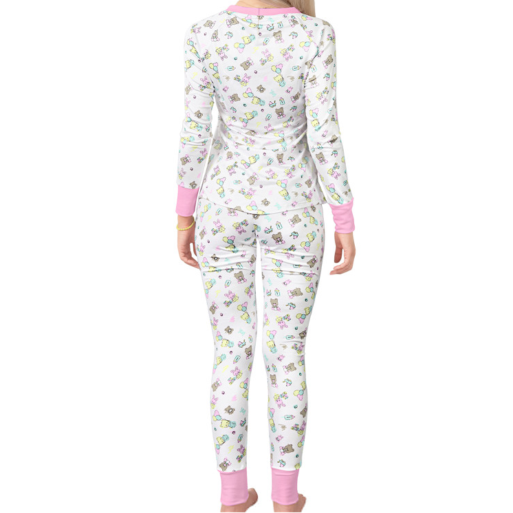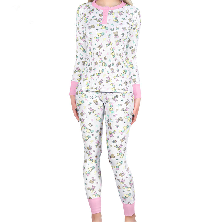 - Long Sleeve Pajama Top: Features a ribbed round neck with cute bear-shaped buttons for comfort and breathability. Raglan sleeves and slits on both sides of the hem to highlight casualness. The wrap-around stripe back collar adds a high-end and classy.