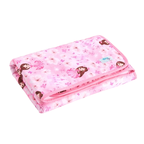 The pad's printed side is made from waterproof PUL material, ensuring that any spills or accidents are contained. The non-printed side is crafted from super soft blue fleece fabric, providing a cozy and comfortable surface that's gentle enough for bare skin. Inside, the pad boasts an extra thick layer of microfiber, which is fast-absorbing and can hold many times its weight in liquid, offering superior protection and comfort.