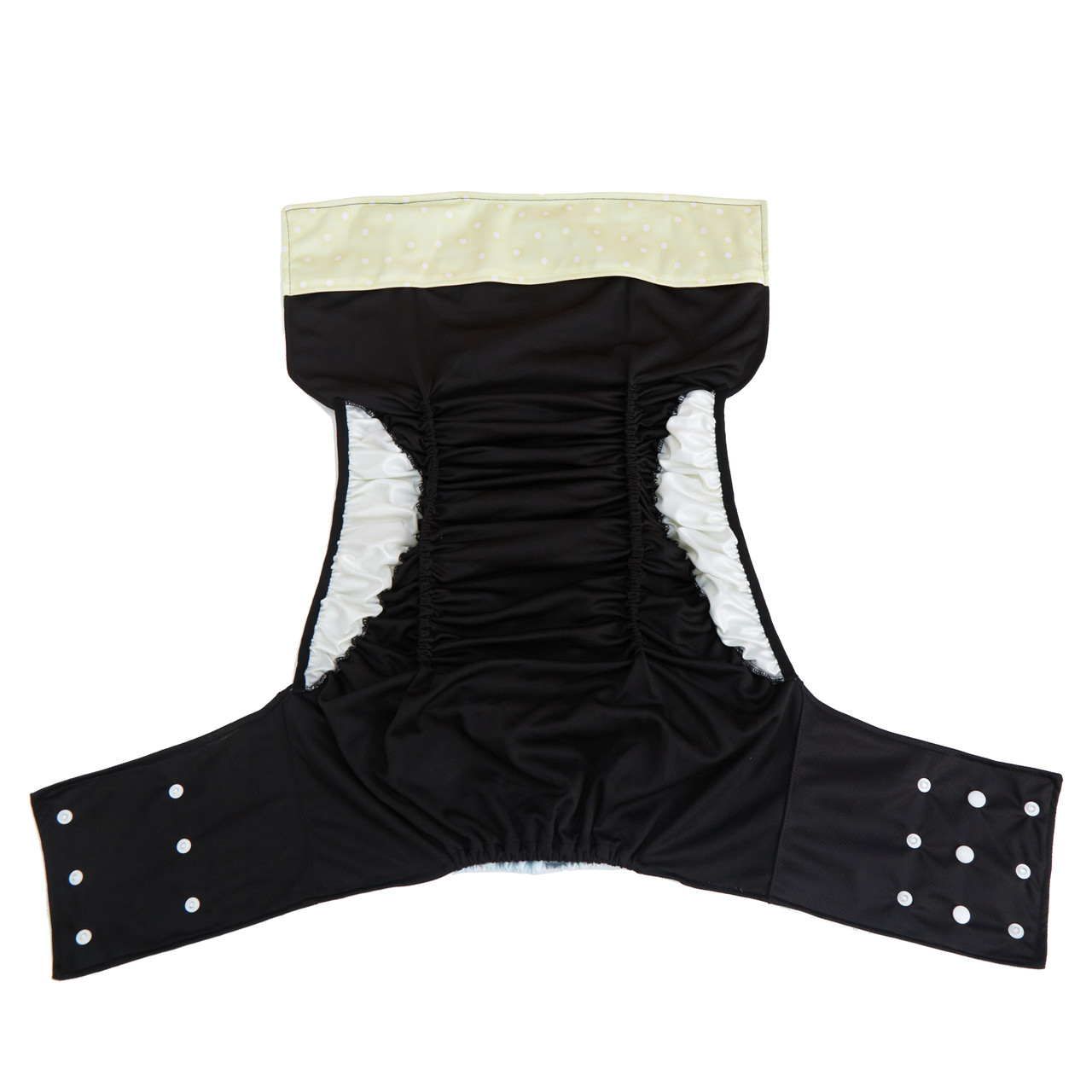 This one-size diaper includes leg gussets for extra leak protection and comfort.