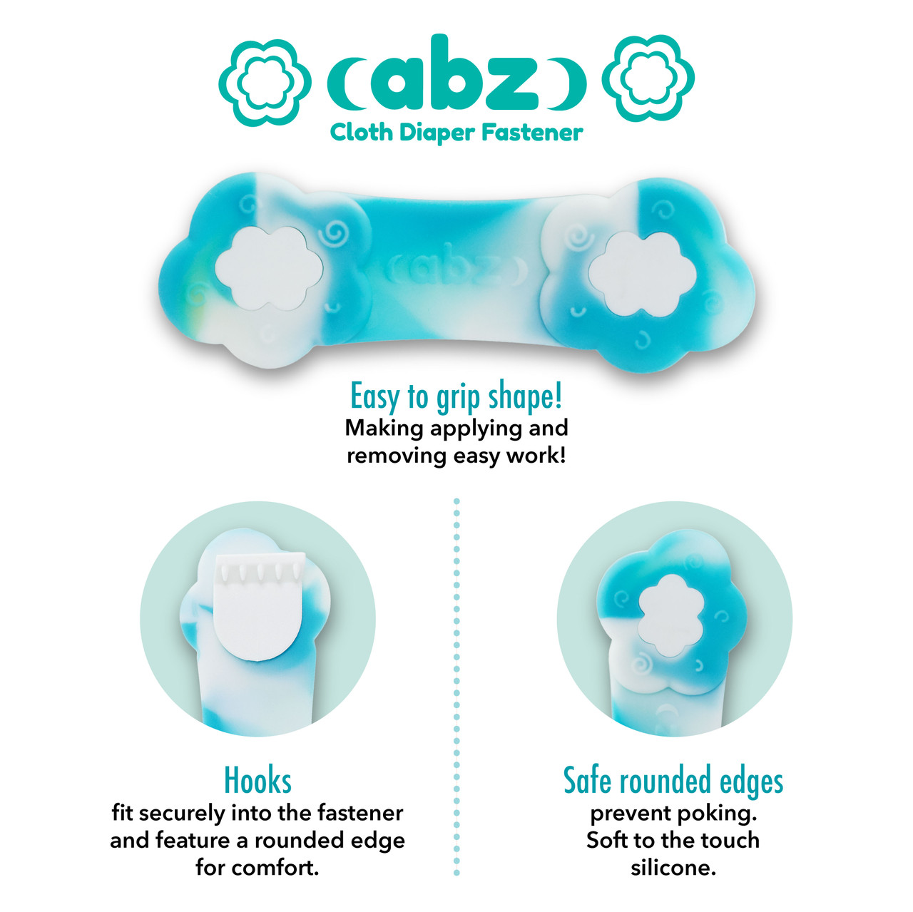 Toss away those old diaper pins! ABZ fasteners are the perfect companion for cloth diapers and prefolds – and a convenient alternative to Boingo and Snappi!