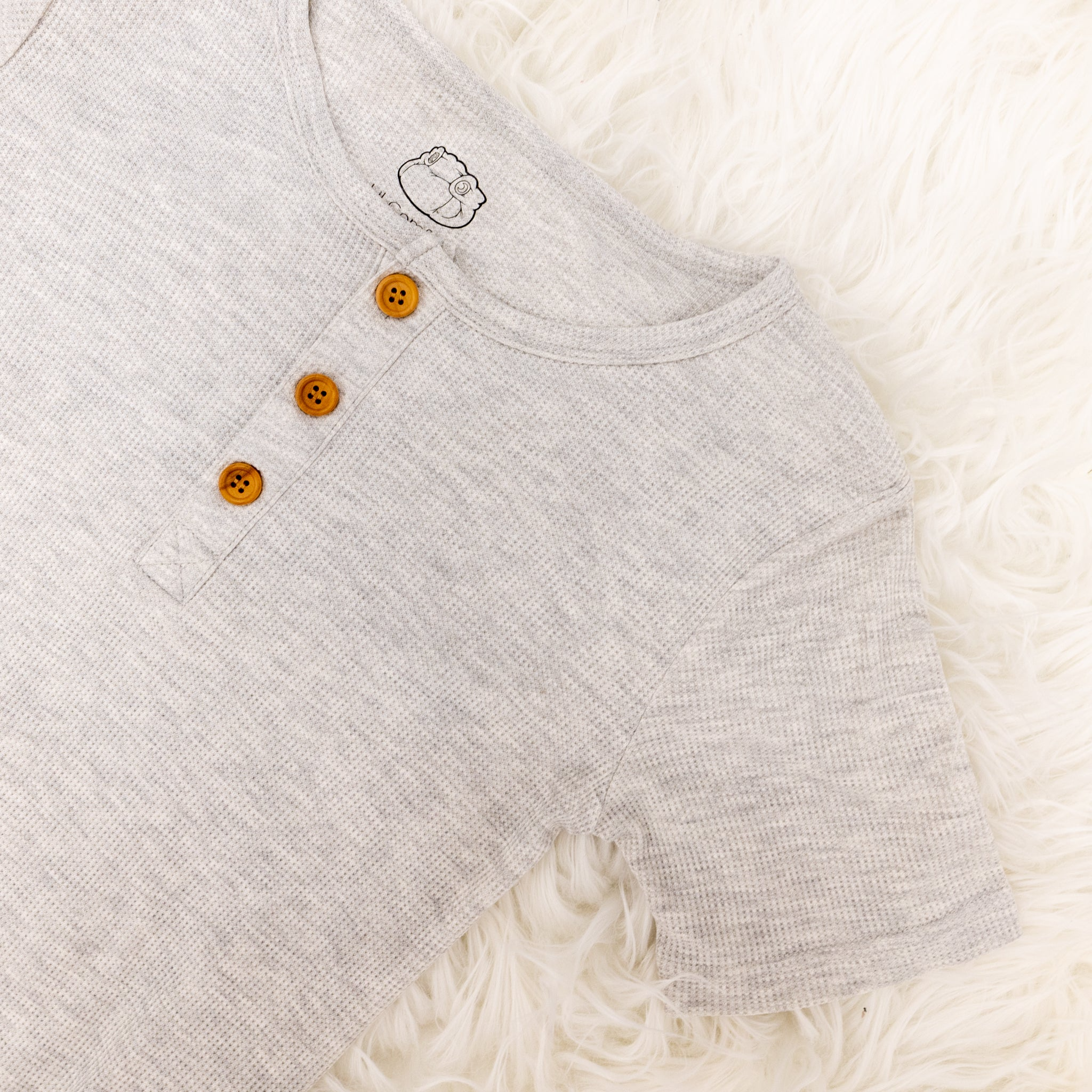 - Henley-style front with three wooden buttons for a classic, easygoing look