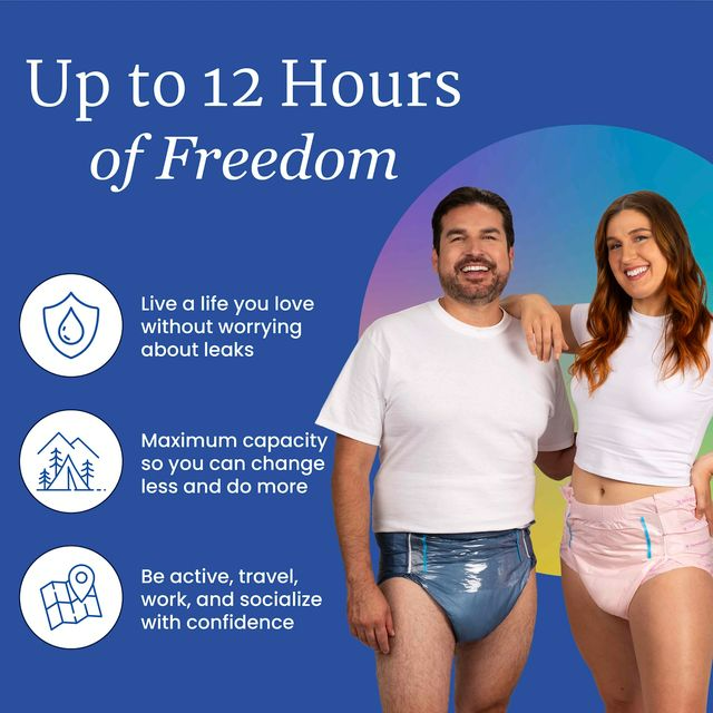 Massive absorbency and wicking ability. Large, heavy-duty refastenable tape tabs with a full landing zone to keep the brief snug and comfortable. Extra-wide, extra-long absorbent core for added protection for restless sleepers. Smooth plastic exterior to resist sagging and odors. Body-close elastics in front & rear waistband.