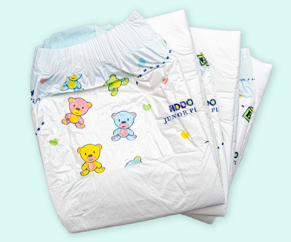 This diaper is a special edition that features the same design as the Junior Plus but is even more absorbent and has four adhesive tapes.
