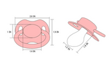 ADULT SIZED TEAT AND EXTRA LARGE SHIELD. Teat Size: 1.6 inch Long x 1.2 inch Wide; Pacifier Shield Size: 2.6 inch Wide x 1.9 inch Tall.