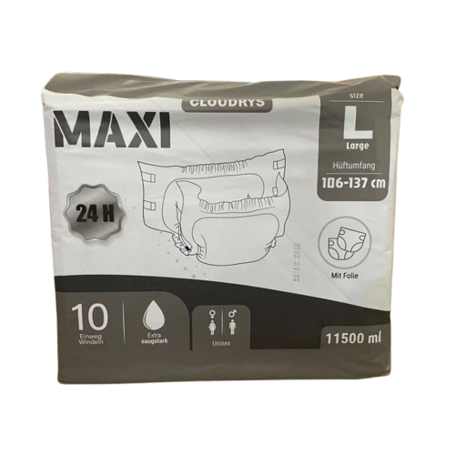 - Absorbency: Very high – overnight protection (over 181 oz capacity = more than 1.42 gallons)