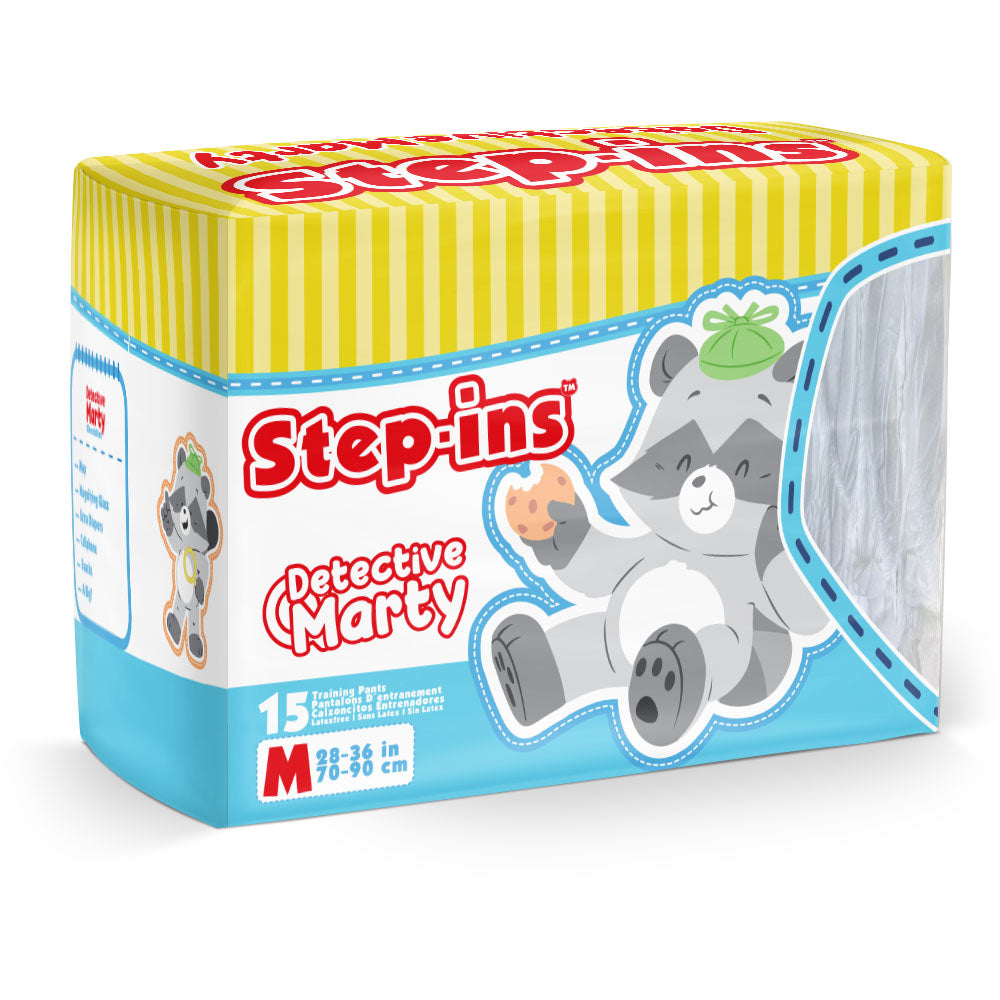 Detective Marty is on the case—searching for the missing cookies! Now you can join the adventure in this newest Step-In print. Fun, playful, and designed to feel just like classic training pants, Step-Ins let you enjoy little time at home or out and about your way with total comfort and protection.